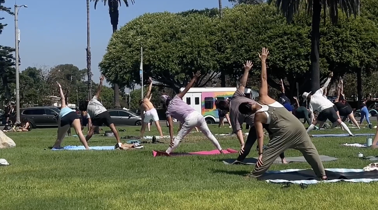 Every morning at 11 a.m., participants gather at the Bixby Park Annex to take part in an open-air class led by rotating instructors who emphasize accessibility, mindfulness and connection.